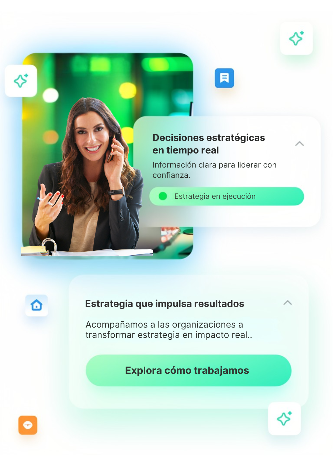 Trabajamos de la mano con líderes y equipos directivos en la ejecución de iniciativas estratégicas.